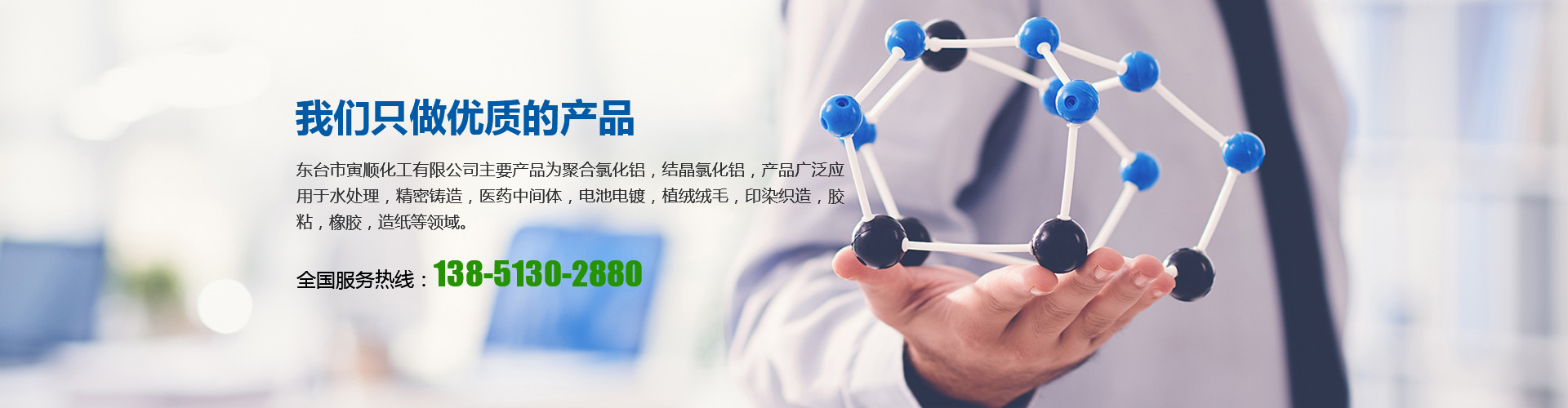 東臺市寅順化工有限公司主要產品為聚合氯化鋁,結晶氯化鋁,產品廣泛應用于水處理精密鑄造,醫藥中間體,電池電鍍,植絨絨毛,印染織造,膠粘,橡膠,造紙等領域。